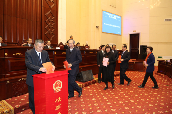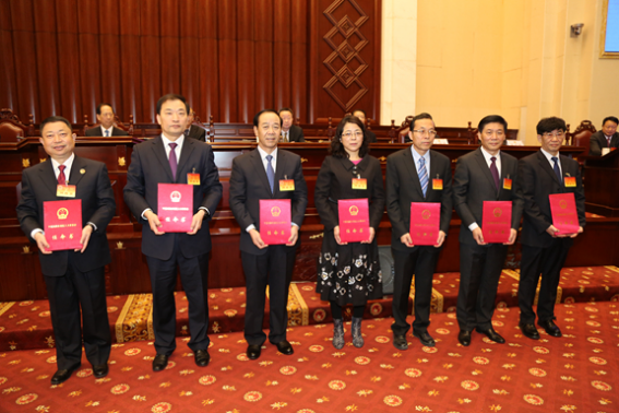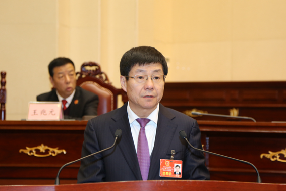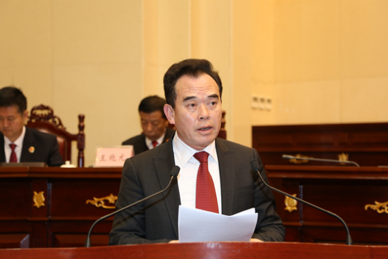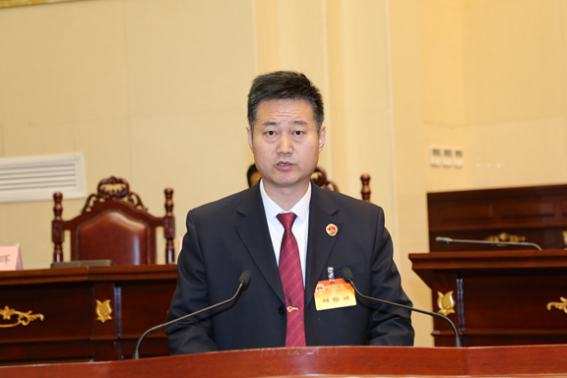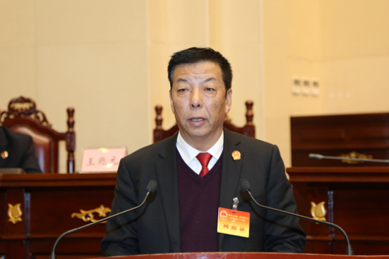 自治区高级人民法院副院长王兆元宣读关于人事任职的议案。